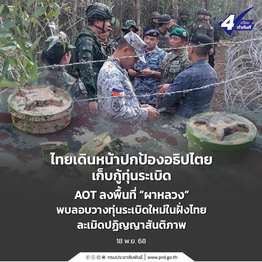 ไทยเดินหน้าปกป้องอธิปไตย เก็บกู้ทุ่นระเบิด AOT ลงพื้นที่ “ผาหลวง” พบลอบวางทุ่นระเบิดใหม่ในฝั่งไทย ละเมิดปฏิญญาสันติภาพ