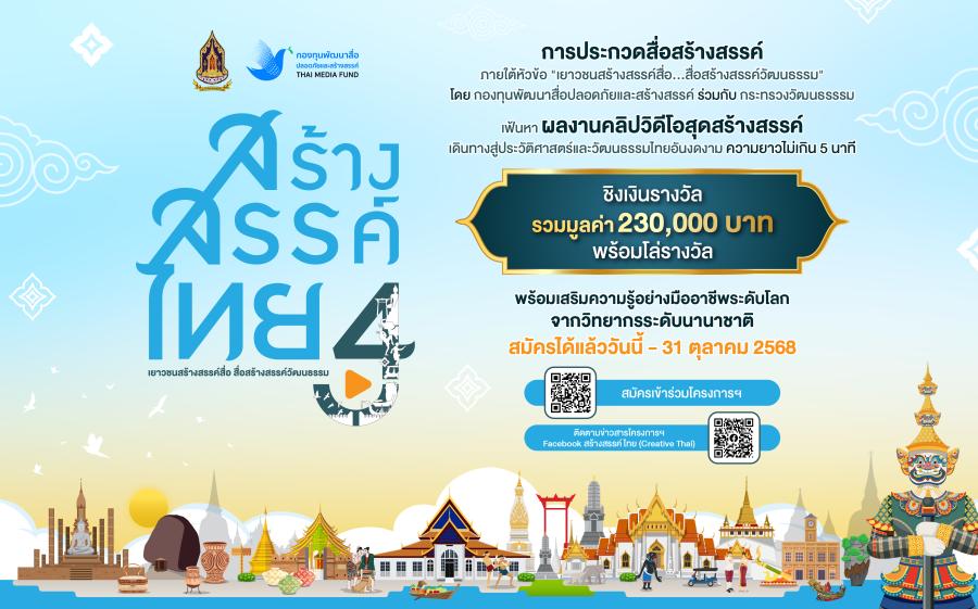 กองทุนพัฒนาสื่อปลอดภัยและสร้างสรรค์ เดินหน้าโครงการ ‘สร้างสรรค์ไทย 4’ ชวนเยาวชนสร้างสรรค์สื่อดี ชิงเงินรางวัลรวมกว่า 230,000 บ.