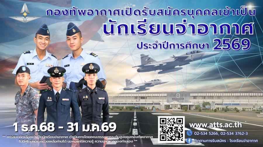 กองทัพอากาศ เปิดรับสมัครบุคคลเข้าเป็นนักเรียนจ่าอากาศ ประจำปีการศึกษา 2569