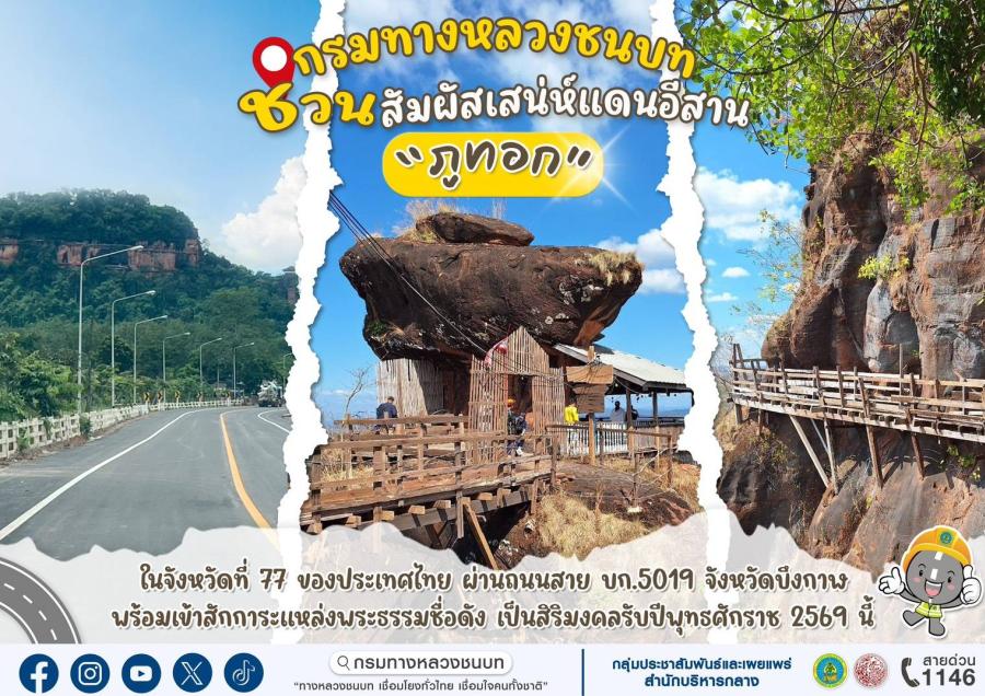 ทช. ชวนสัมผัสเสน่ห์แดนอีสาน “ภูทอก” ผ่านถนนสาย บก.5019 จ.บึงกาฬ พร้อมสักการะศาสนสถานชื่อดังเสริมสิริมงคลรับปี 2569