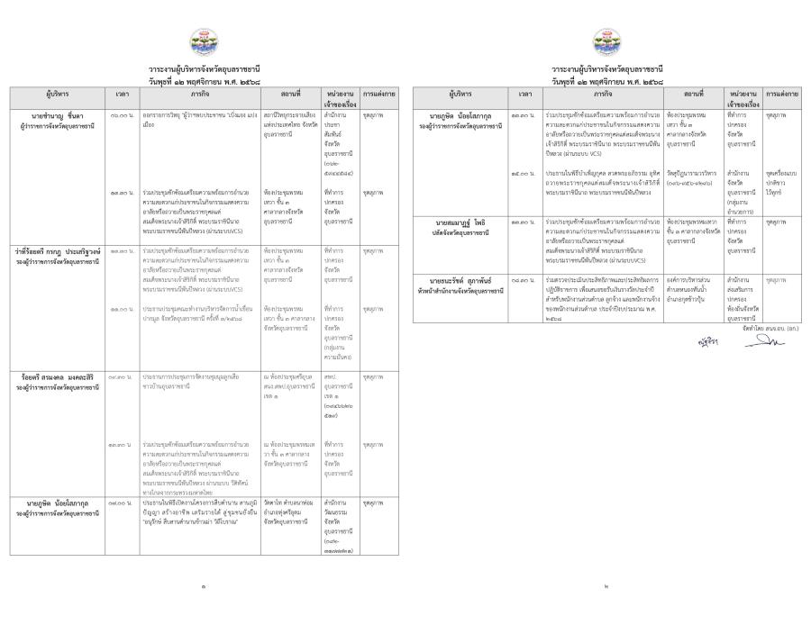 วาระงานผู้บริหารจังหวัดอุบลราชธานี วันพุธที่ 12 พฤศจิกายน 2568