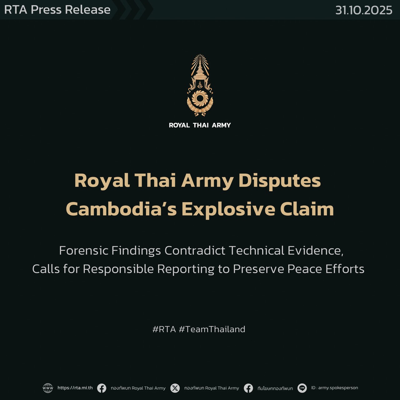 Royal Thai Army Disputes Cambodia’s Explosive Claim—Forensic Findings Contradict Technical Evidence, Calls for Responsible Reporting to Preserve Peace Efforts