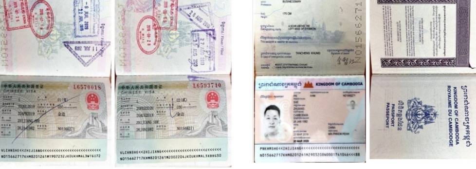 (รูปภาพแสดงหนังสือเดินทางประเทศกัมพูชาที่ถูกต้องตามกฎหมายและวีซ่าประเทศจีน)