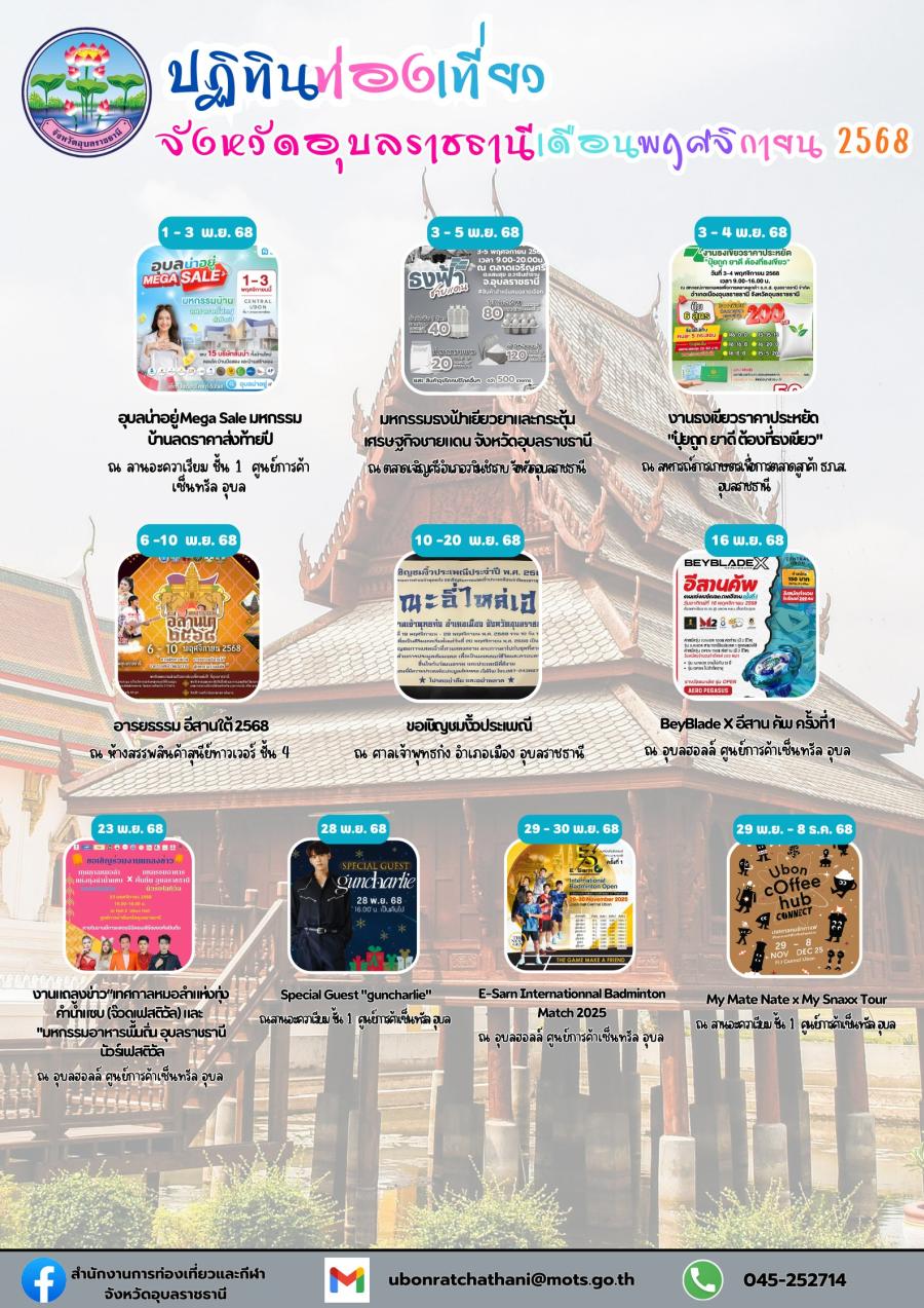 ปฏิทินท่องเที่ยว จังหวัดอุบลราชธานี เดือนพฤศจิกายน 2568
