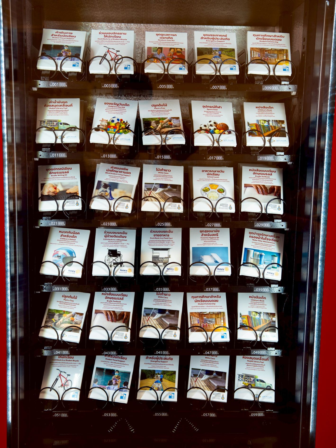 - ตู้บริจาค Giving Machine เป็นตู้จำหน่ายอัตโนมัติที่ออกแบบขึ้นเป็นพิเศษเพื่อให้ผู้คนสามารถร่วมบริจาคสิ่งจำเป็นแก่องค์กรการกุศลทั้งในประเทศไทยและทั่วโลก ถือเป็นอีกก้าวสำคัญที่จะช่วยยกระดับบทบาทของประเทศไทยในเวทีการกุศลเชิงนวัตกรรมระดับสากล