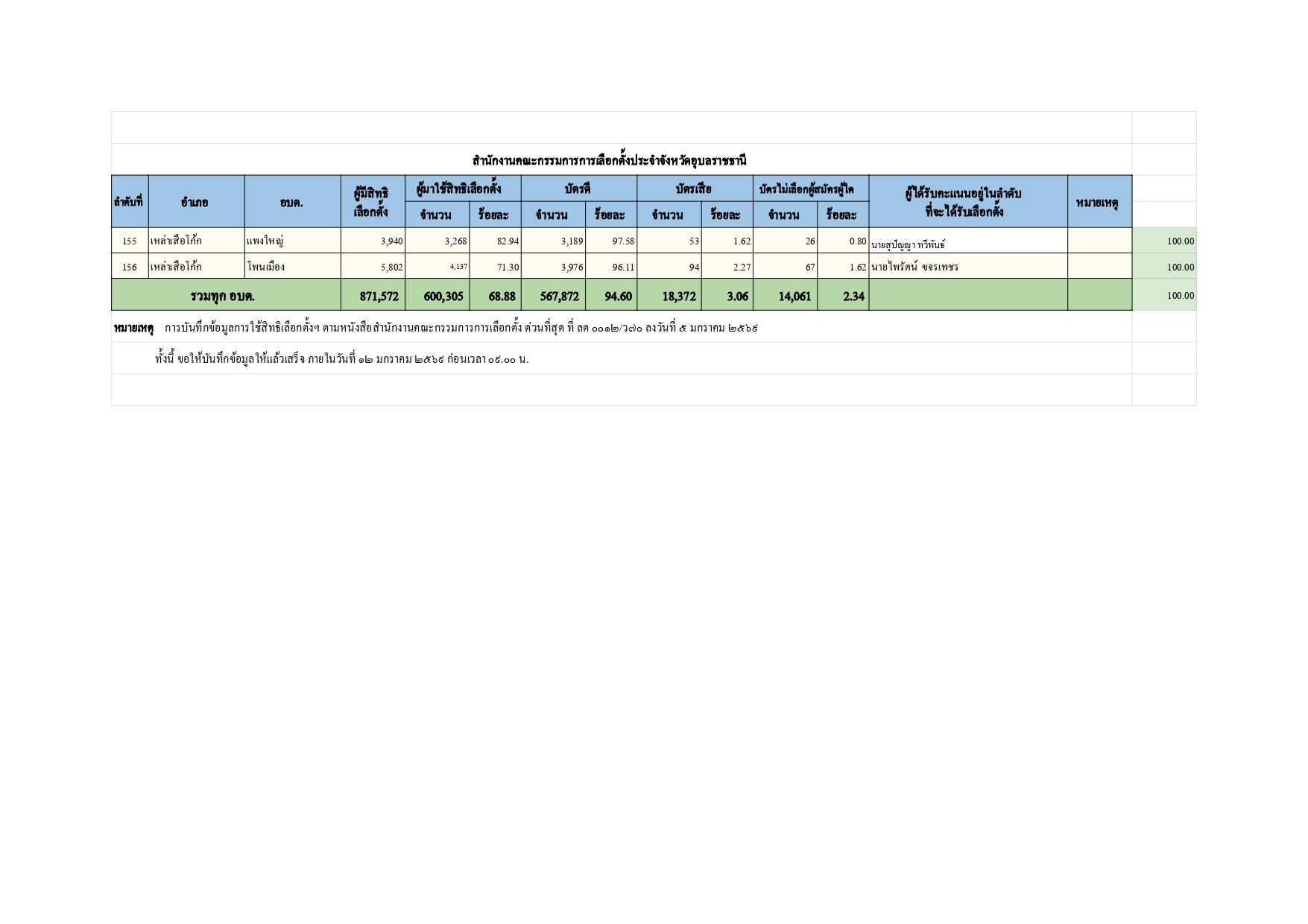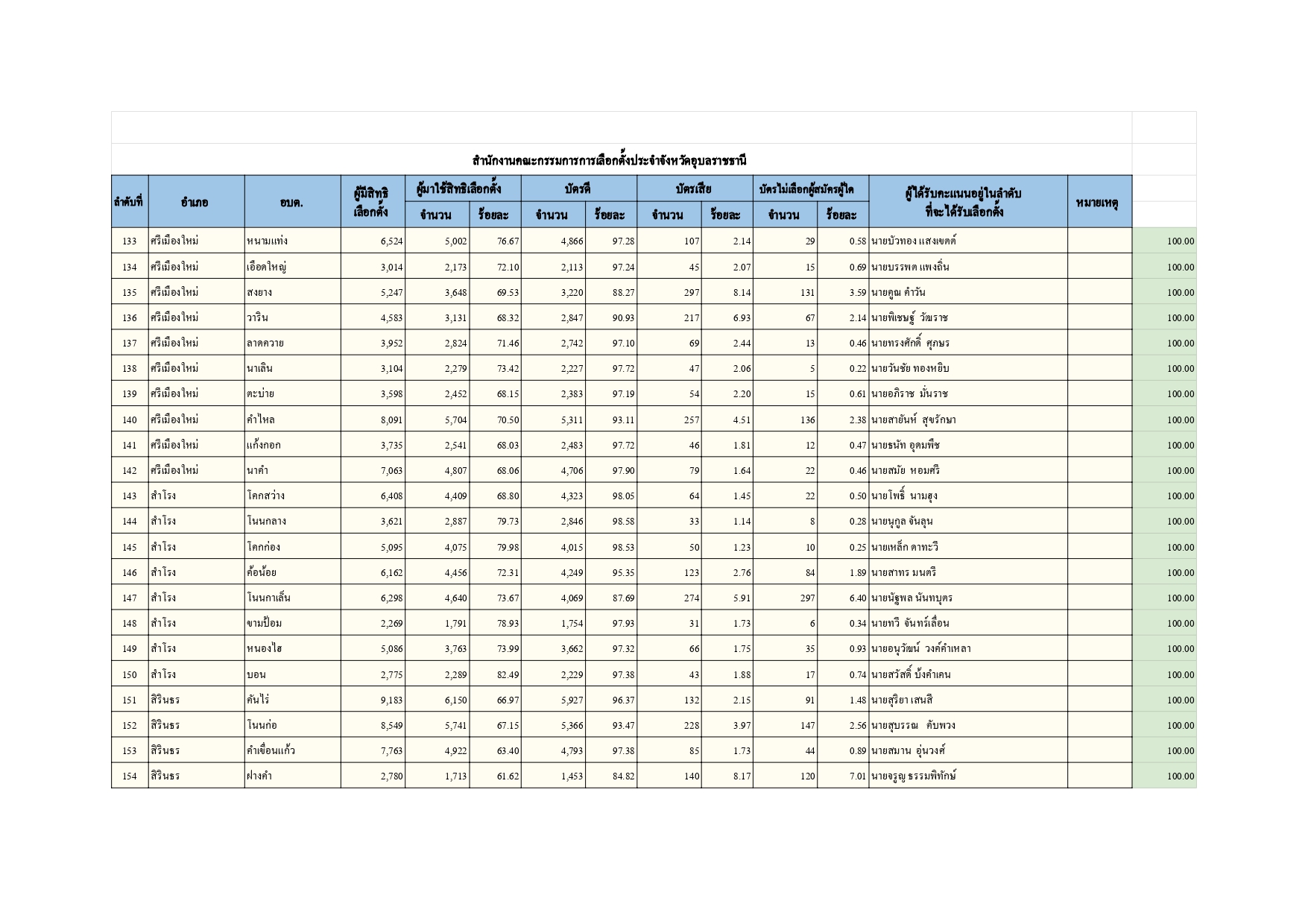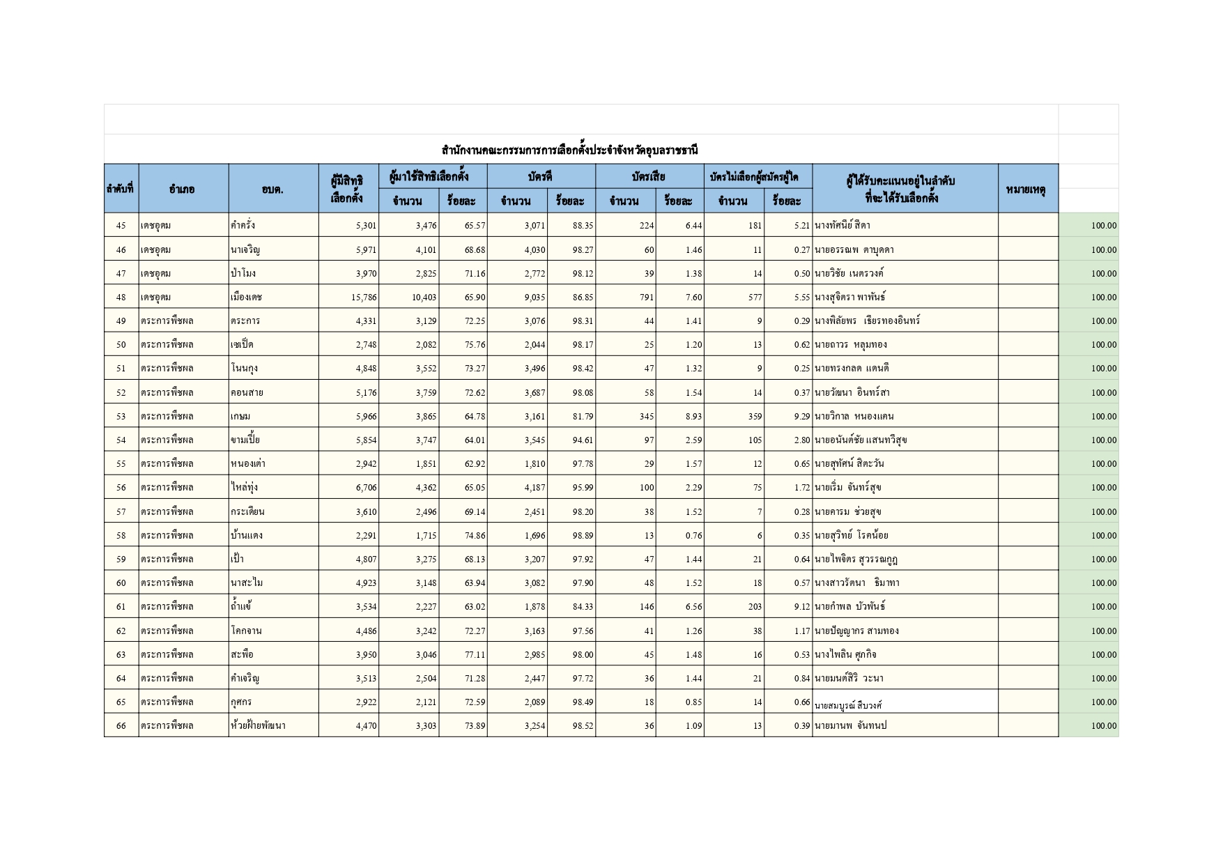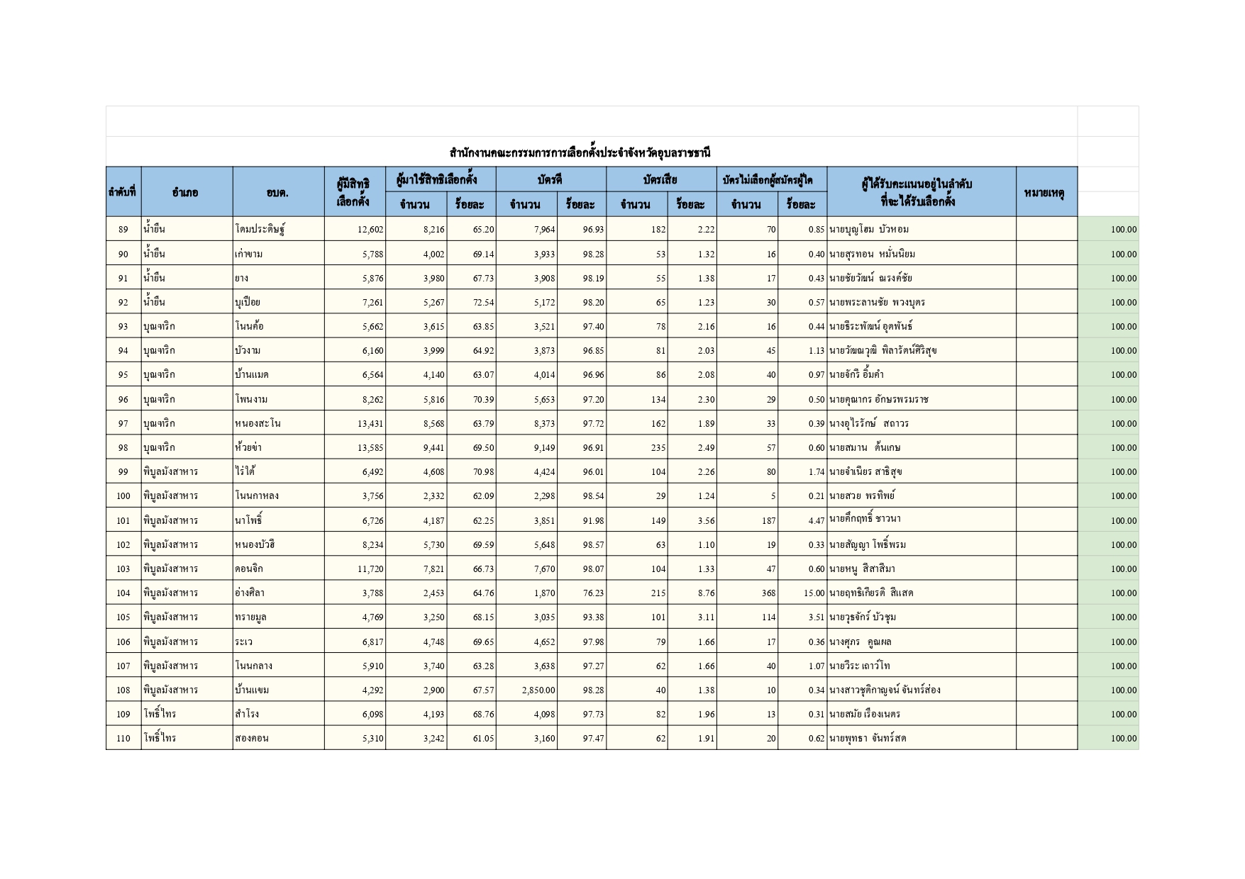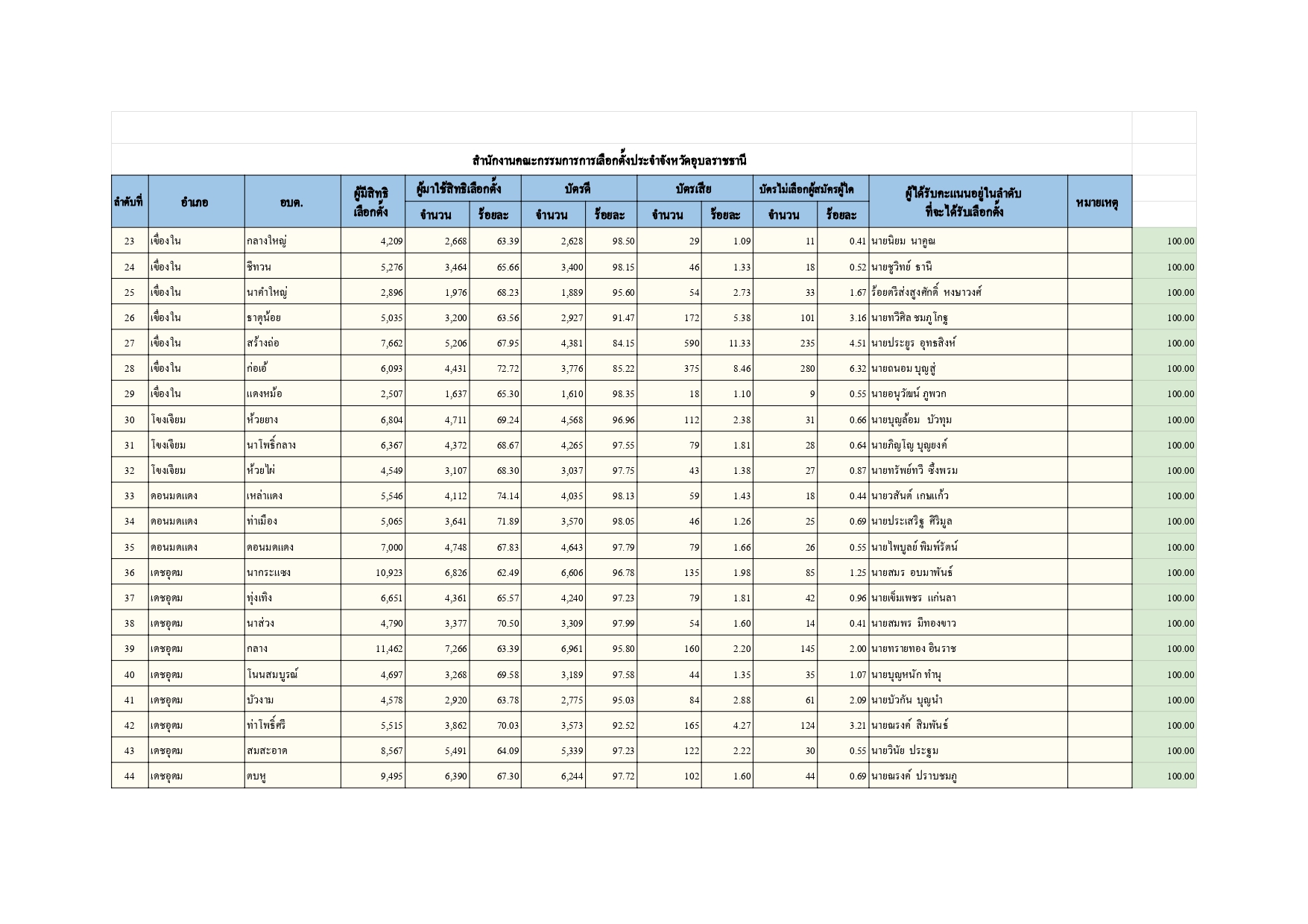 จังหวัดอุบลราชธานี : ผลการเลือกตั้ง อบต.อย่างไม่เป็นทางการ